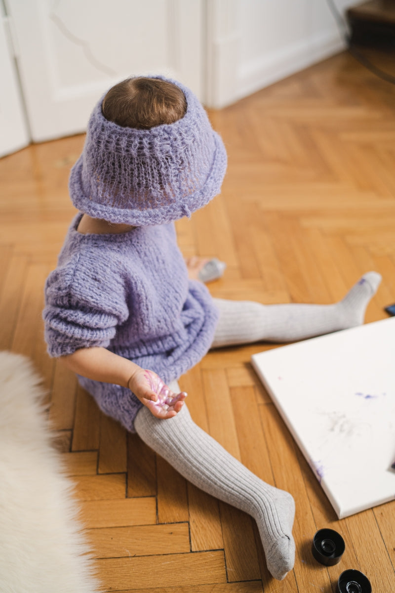 Baby Knitted Lavender Dress and Hat Set