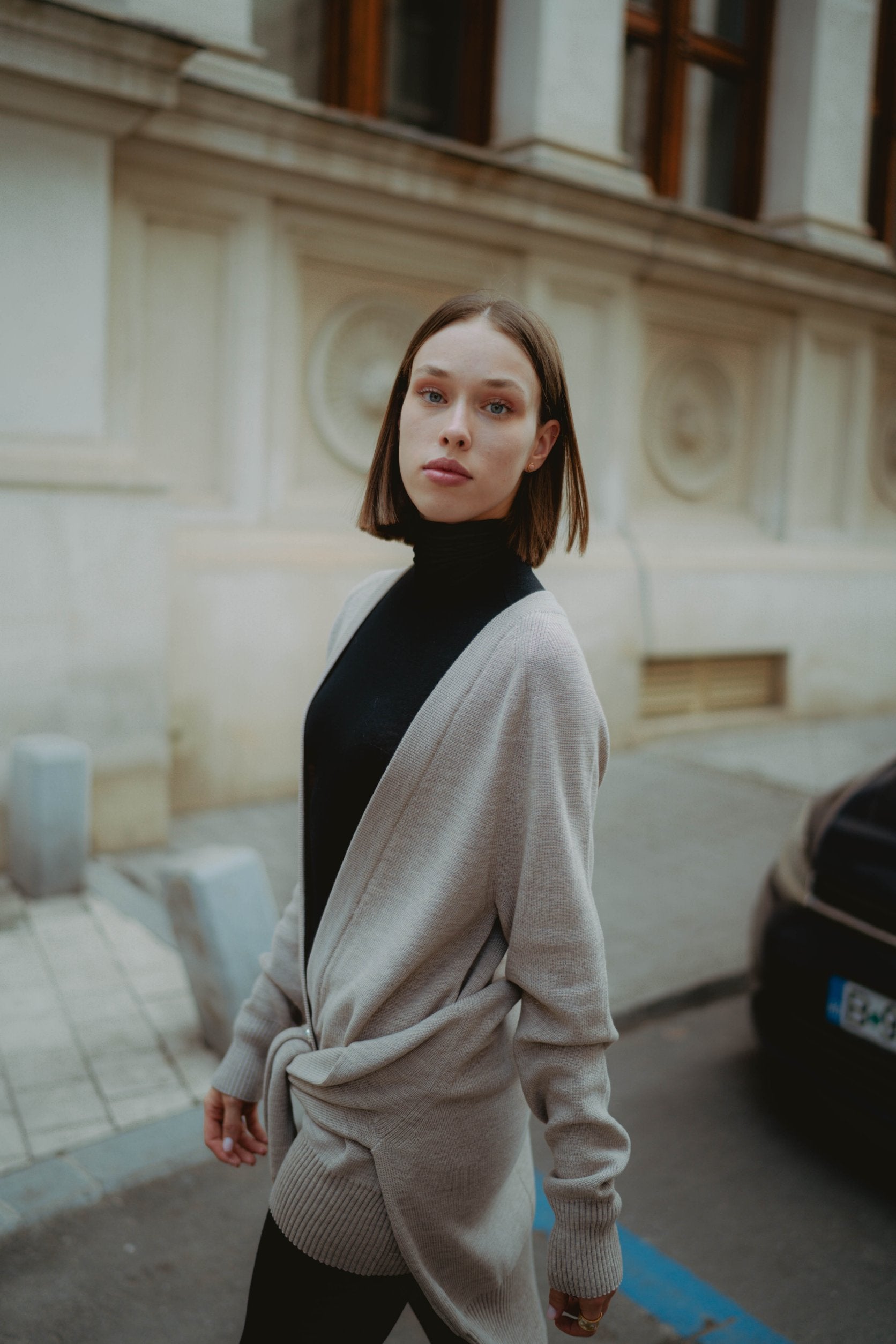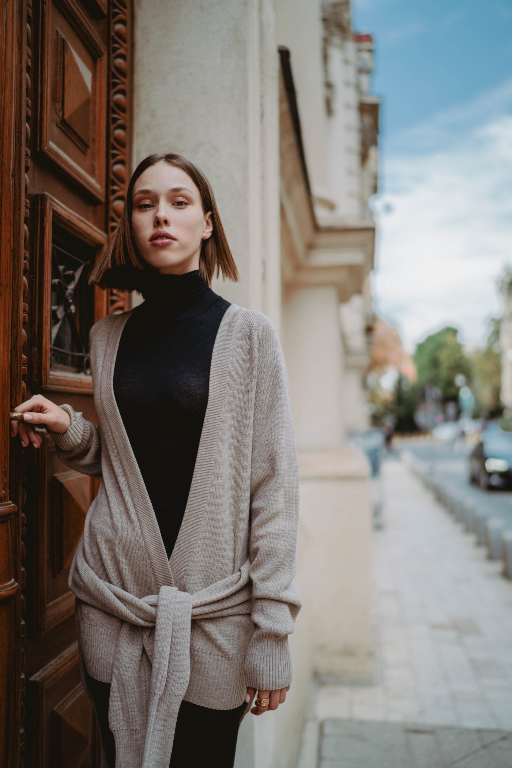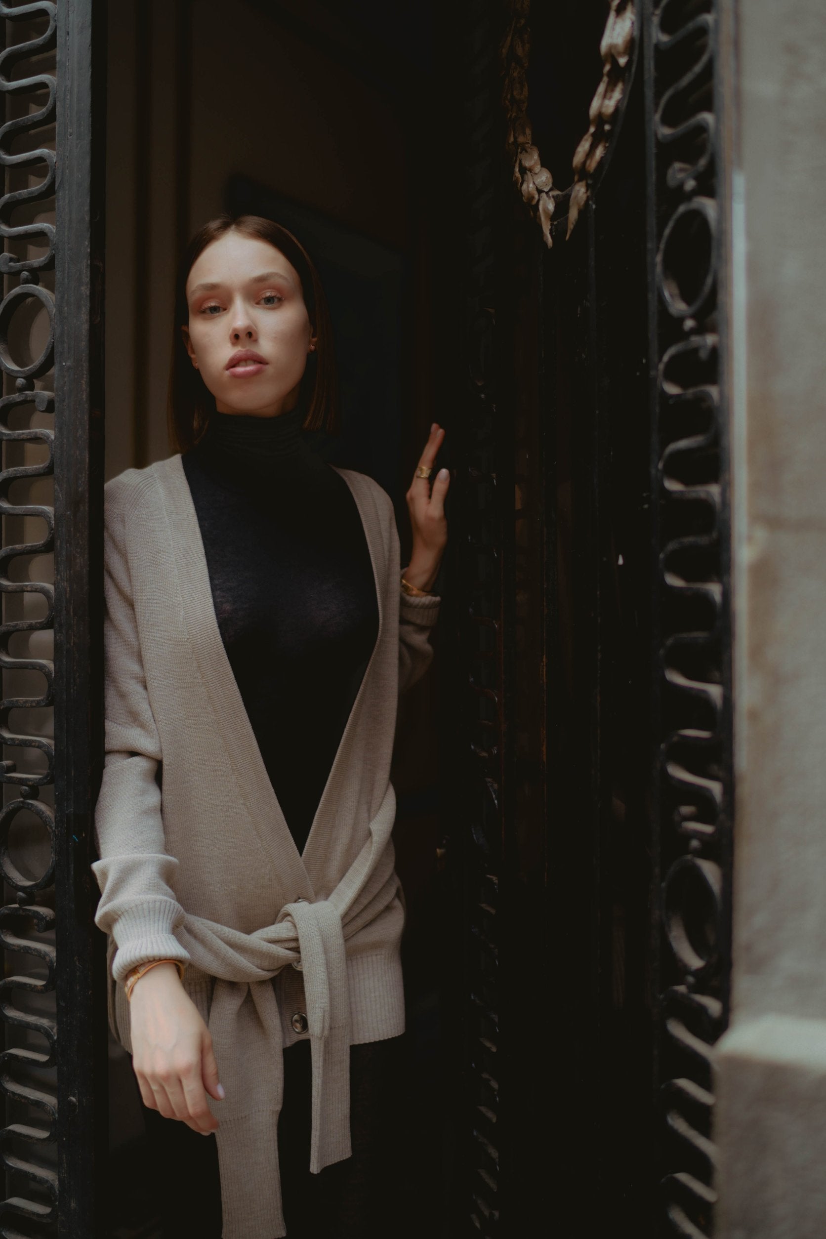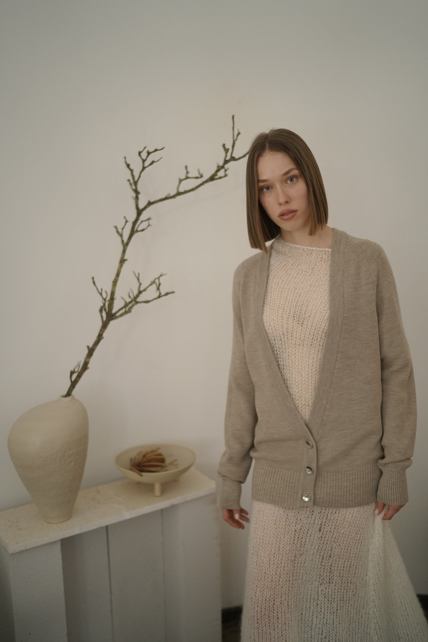Fine knit cardigan taupe
