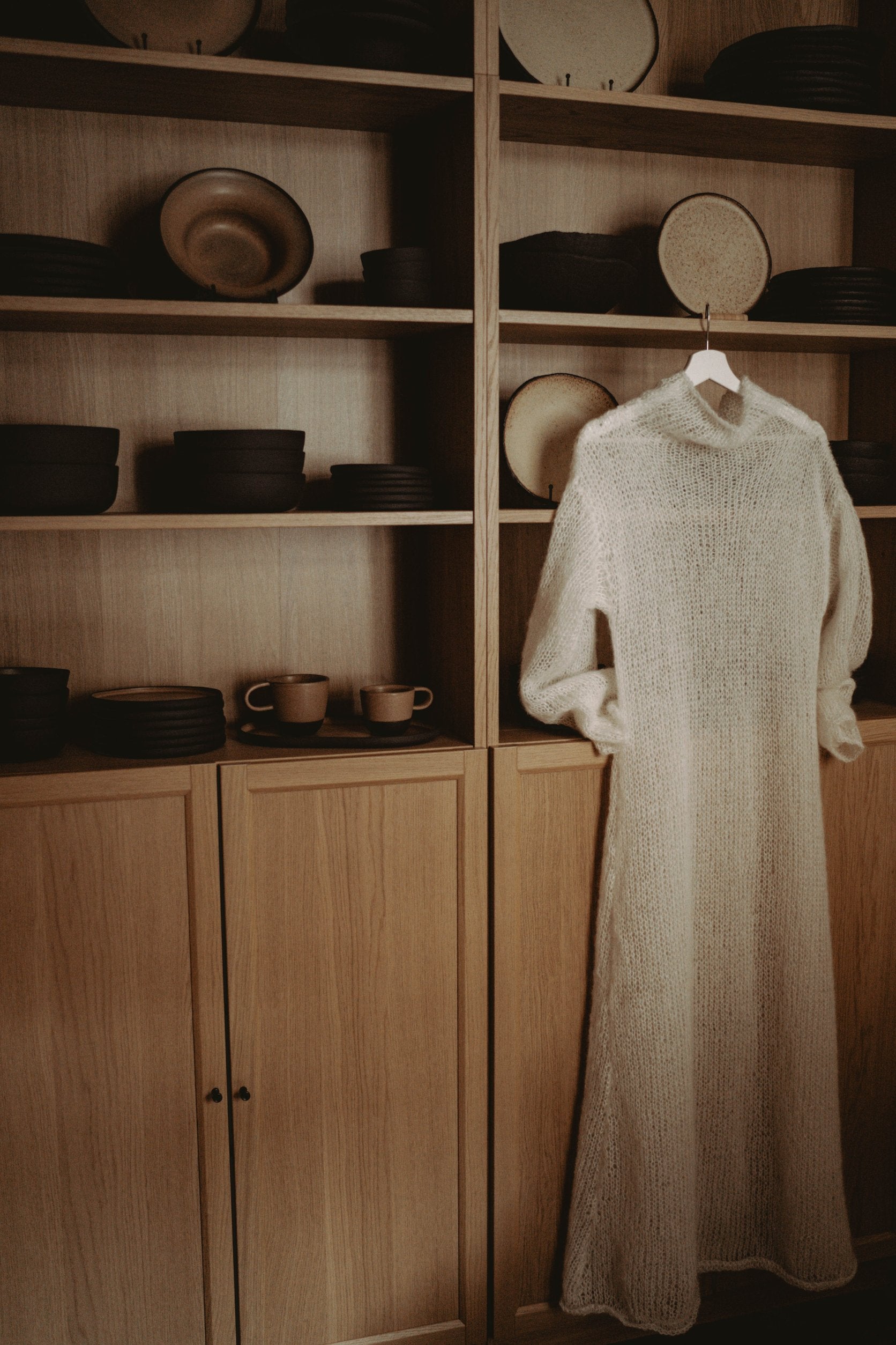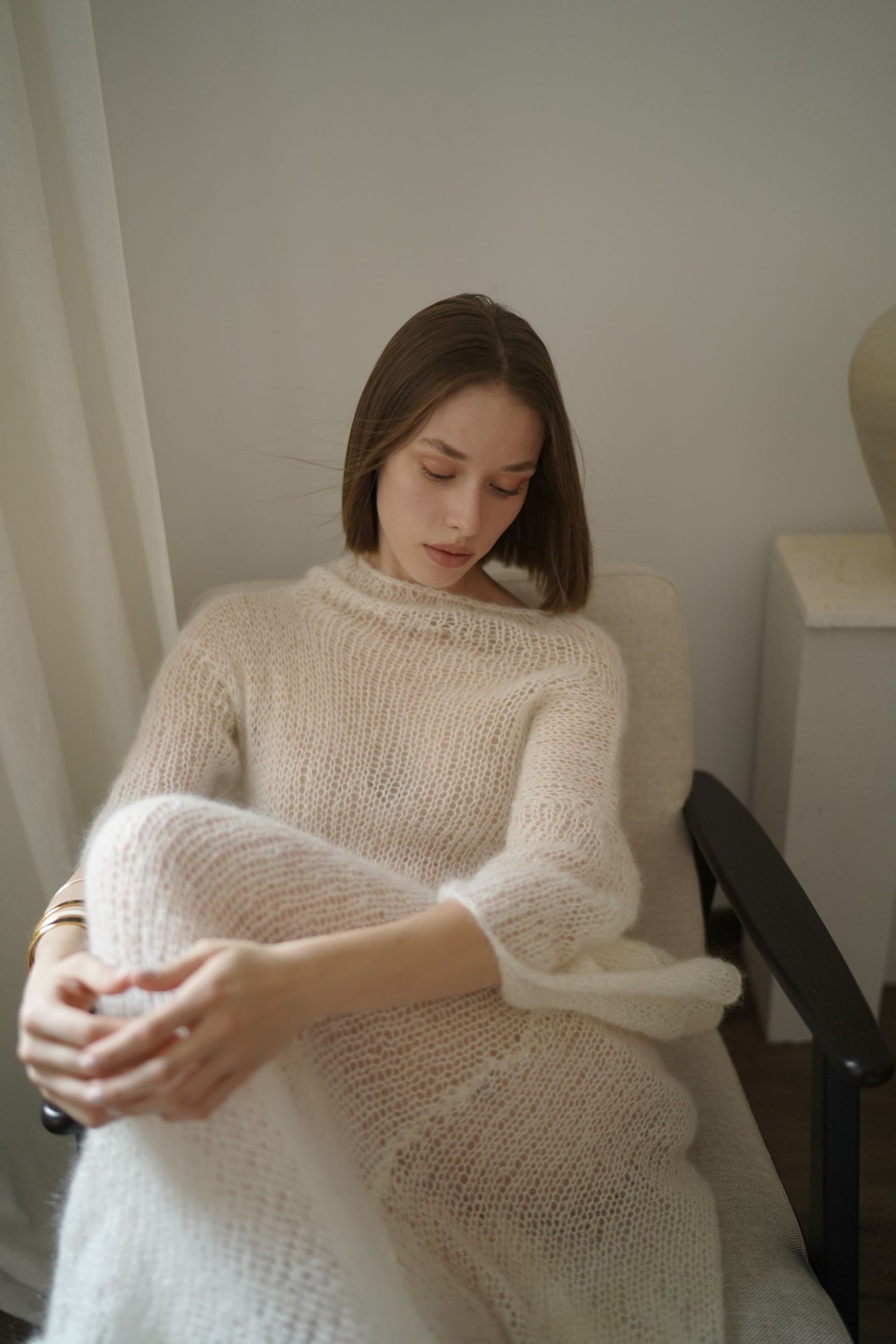 An easy-fitting, lightweight dress from fine mohair blended with silk for a feather-soft hand feel and semi-sheer look.