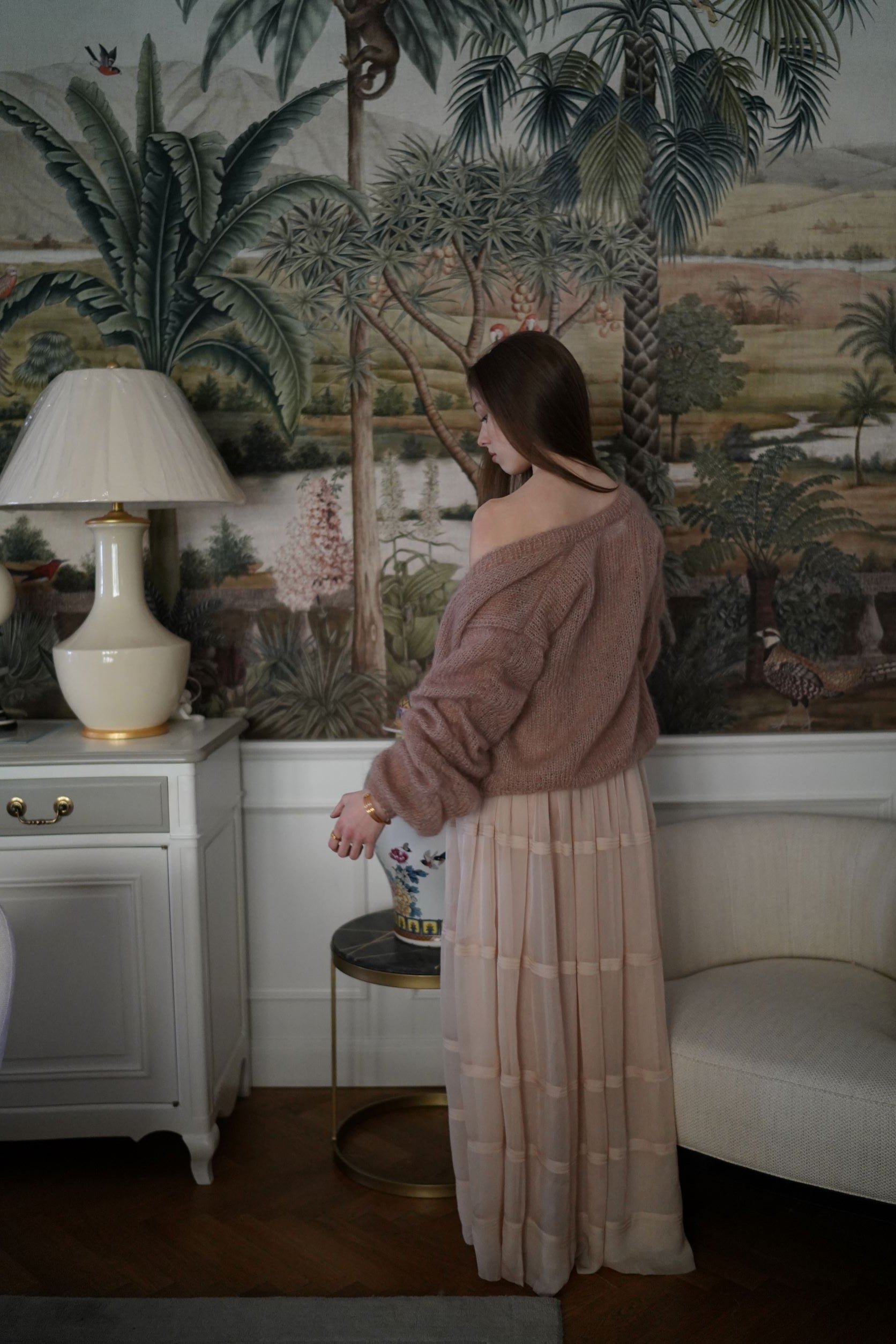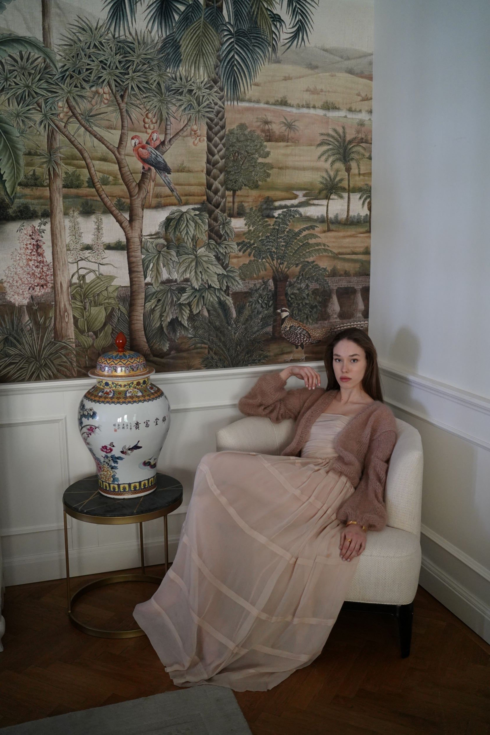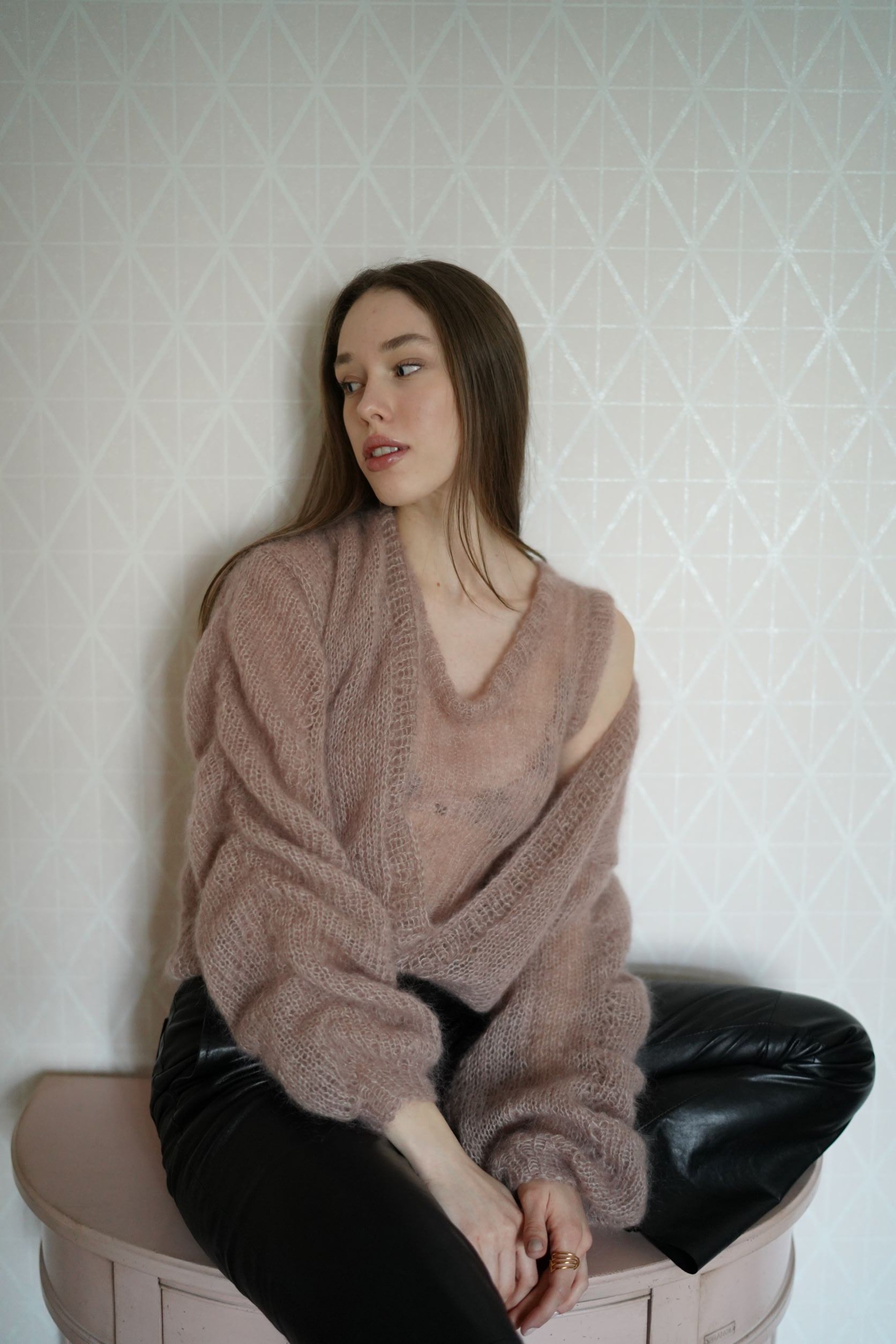 A lightweight, slightly loose, Italian mohair & pure silk cardigan, featuring large, voluminous sleeves and a waist length. Designed in a neutral palette, with a flowy, feminine shape and entirely crafted by hand by Romanian artisans.